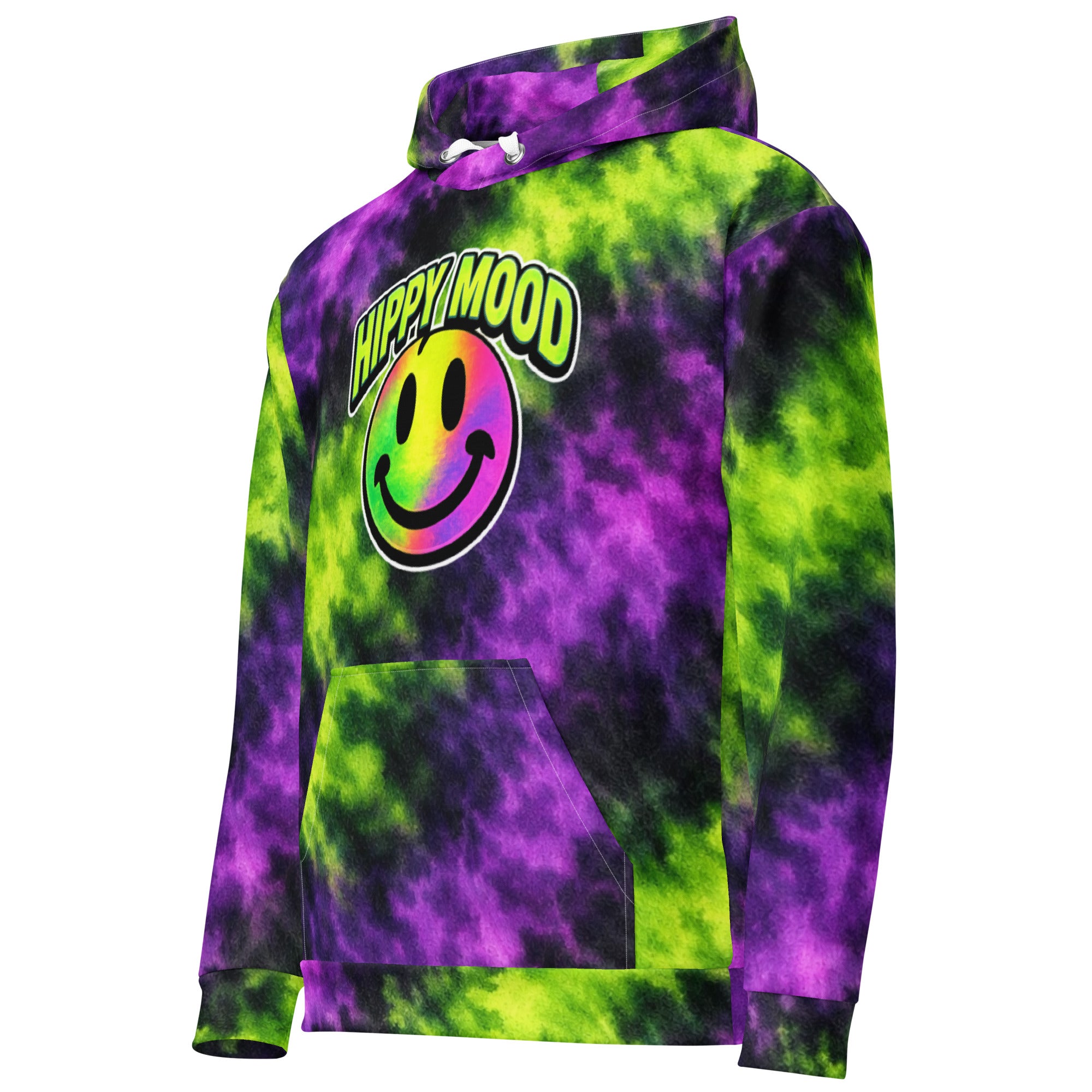 Turn up the color and the vibes with the Purple Haze Tie-Dye Hoodie from the Hippy Mood Lifestyle Collection. Featuring a bold purple and neon green tie-dye pattern with the iconic Hippy Mood smile logo, this hoodie delivers standout streetwear style with a laid-back feel. Soft, comfortable, and made to keep the good vibes going wherever you go.